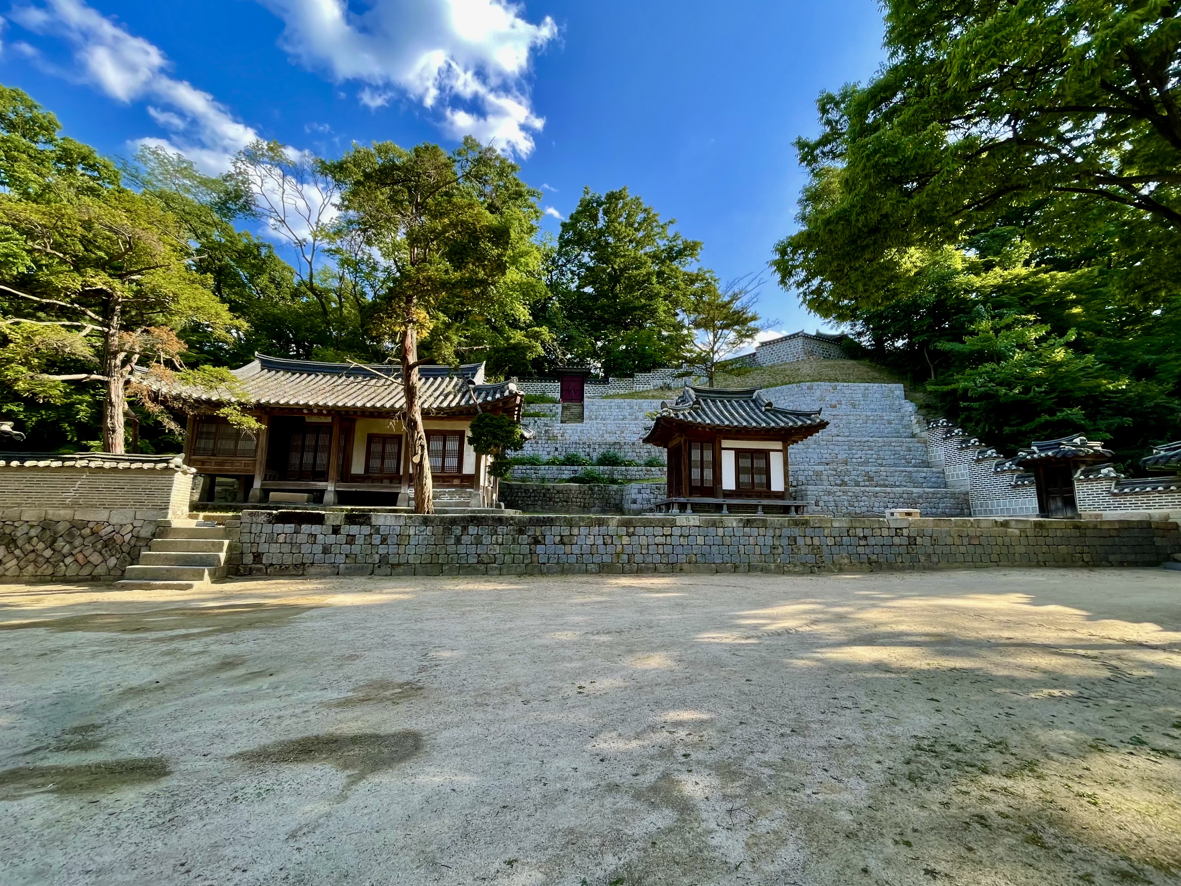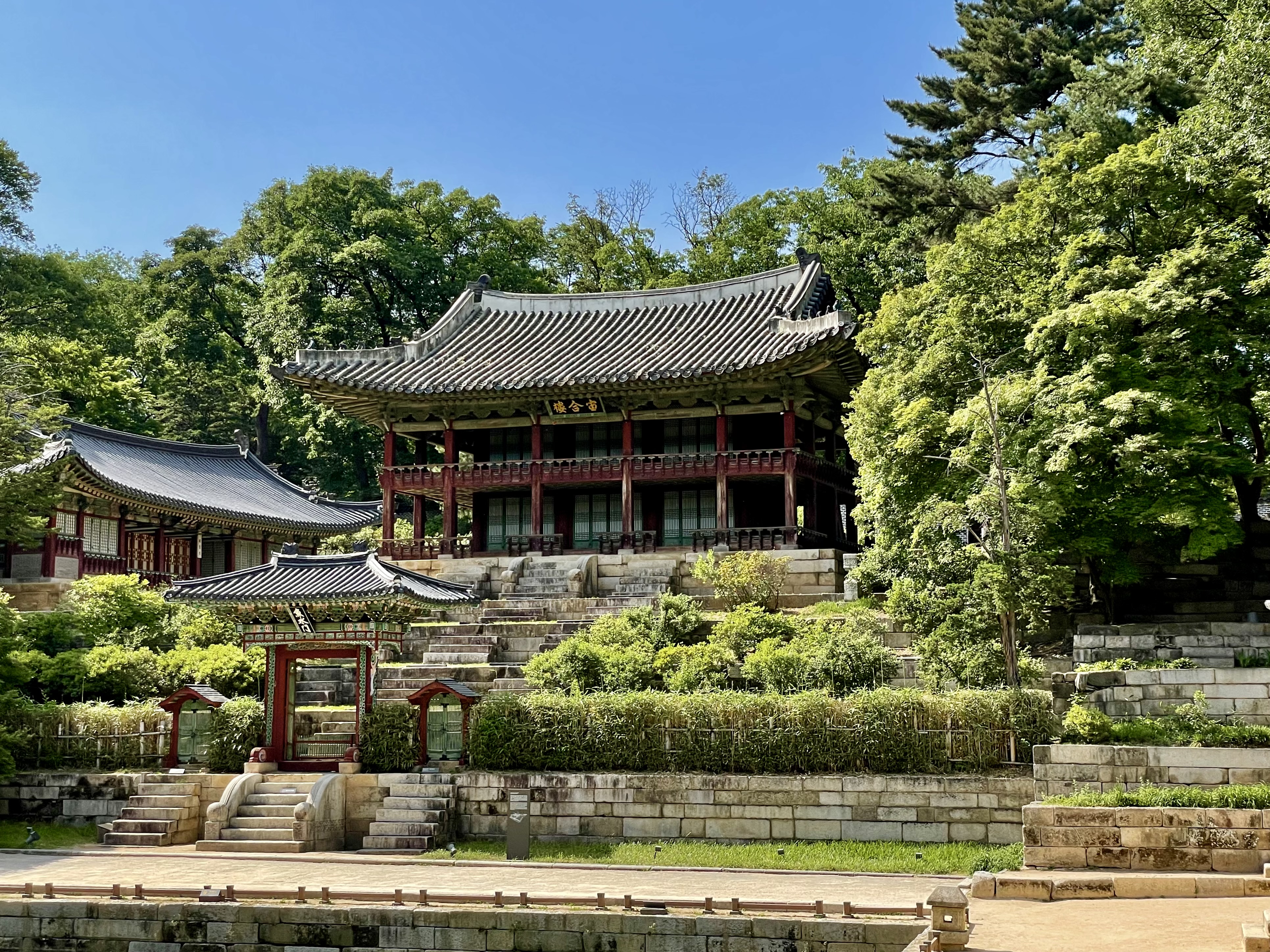 The Secret Garden, located behind Changdeokgung Palace, was created during the Joseon dynasty and blends harmoniously into the surrounding landscape. Designed with a series of terraces, flowering trees, flowers, a lotus pool, and pavilions this area served as a resting place and retreat for the royal family members. The garden was also occasionally used as an archery range and the location of military drills. Many of the trees in the garden are believed to be over 300 years old. Exploring the gardens, requires joining an official guided tour, during which visitors are led to various highlights including the Juhamnu Pavilion and royal library, the hexagonal-shaped Jondeokjeong Pavilion, and the Aeryeonjeong Pavilion and Lotus pond. Tour participants also pass under the Bulromun Stone Gate, which legend says grants blessings of long life and good health.