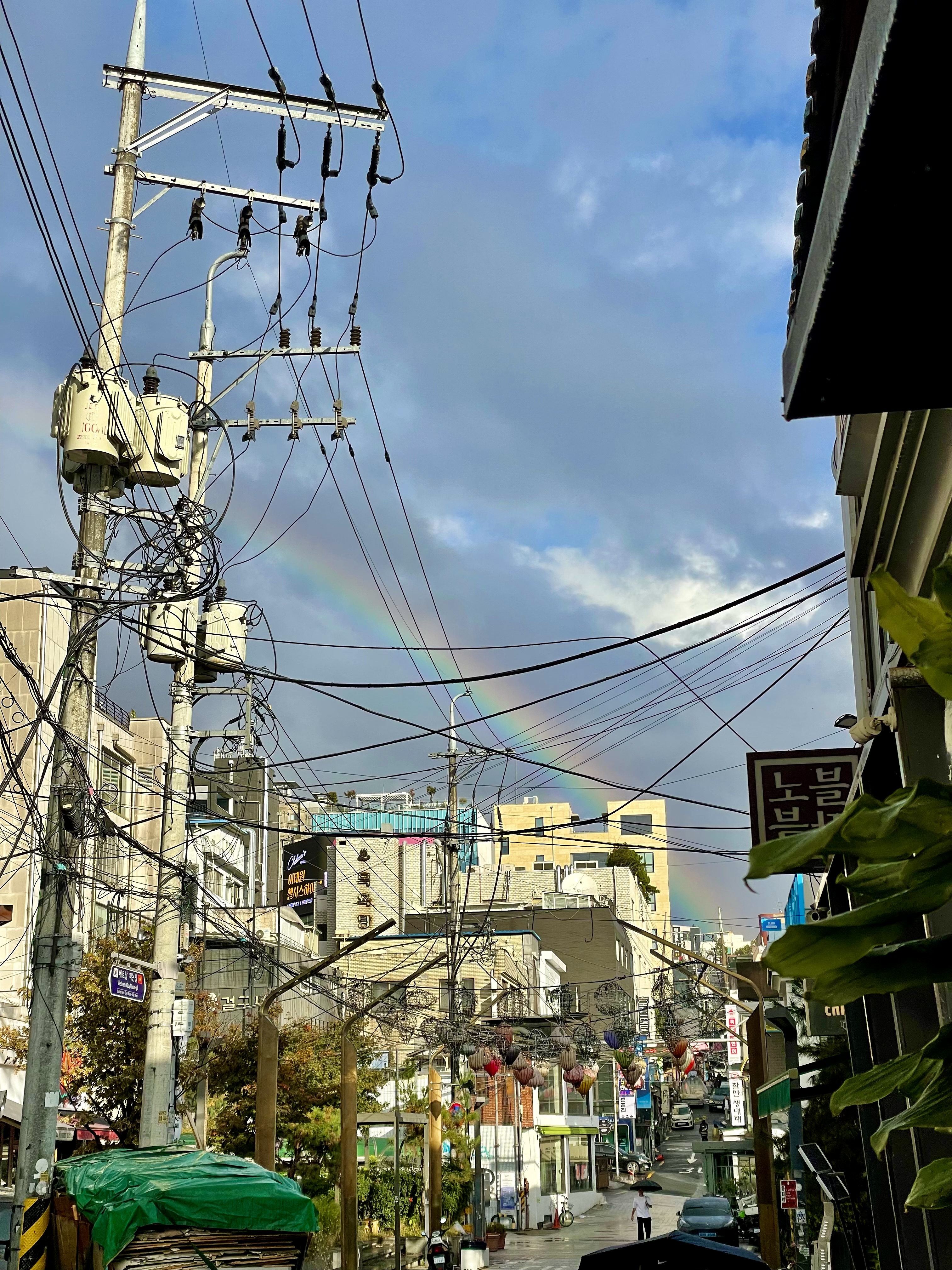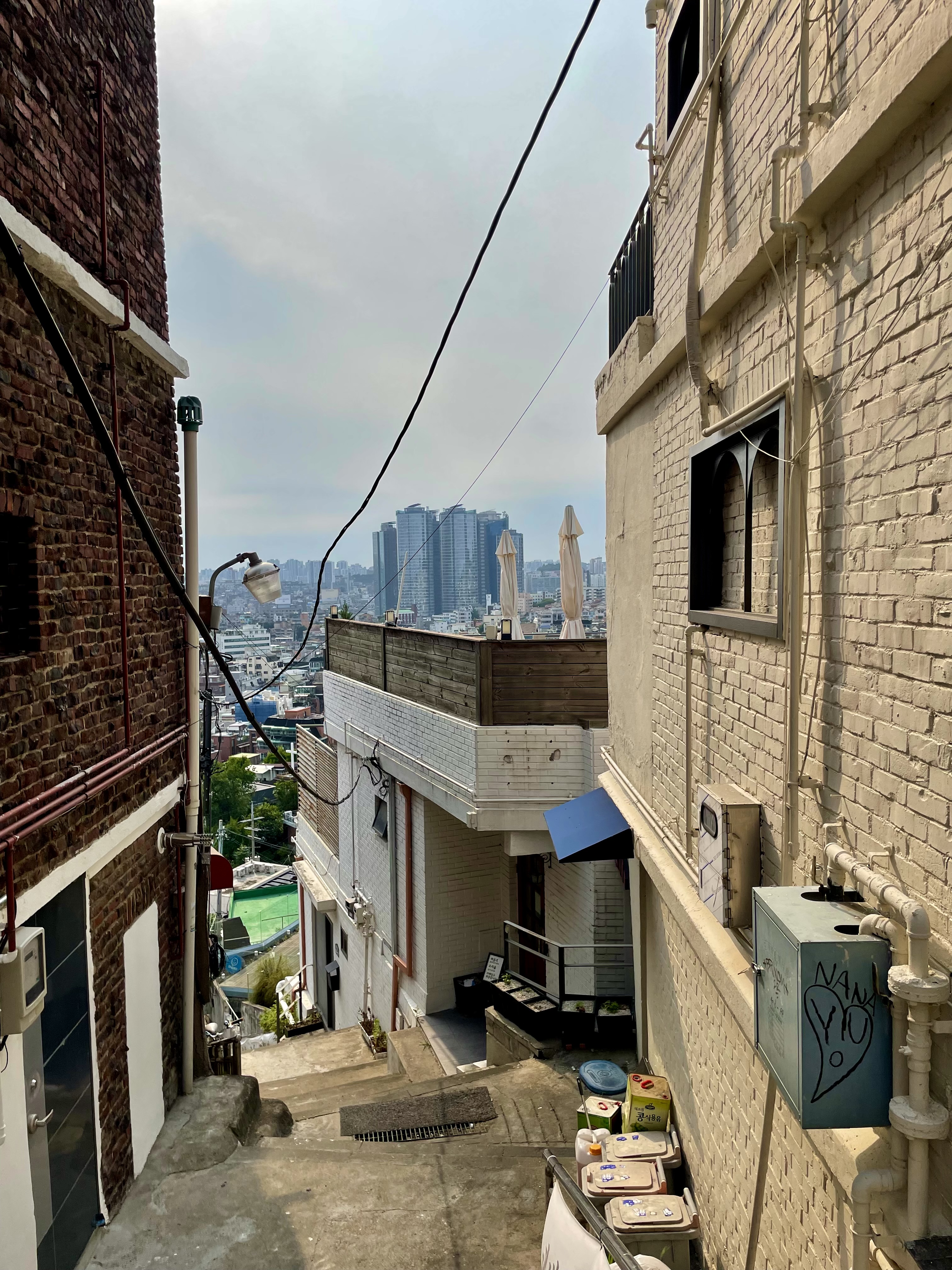 This is another great spot for visiting famous filming locations from popular Kdramas. We took photos in front of Park Saeroyi’s Danbam (탄밤) pub from Itaewon Class and caught a glimpse of the Welcome to Waikiki guesthouse. Since Itaewon is frequently used for filming, there’s always the chance that you will bump into a film crew during your visit. On one of our trips, we stumbled upon one shooting a new commercial. The neighborhood also has amazing views of Namsan Tower which is close by. Both times we visited Itaewon it was raining out, but we were still able to enjoy walking down the street and on the second visit we were even rewarded with a bright rainbow!